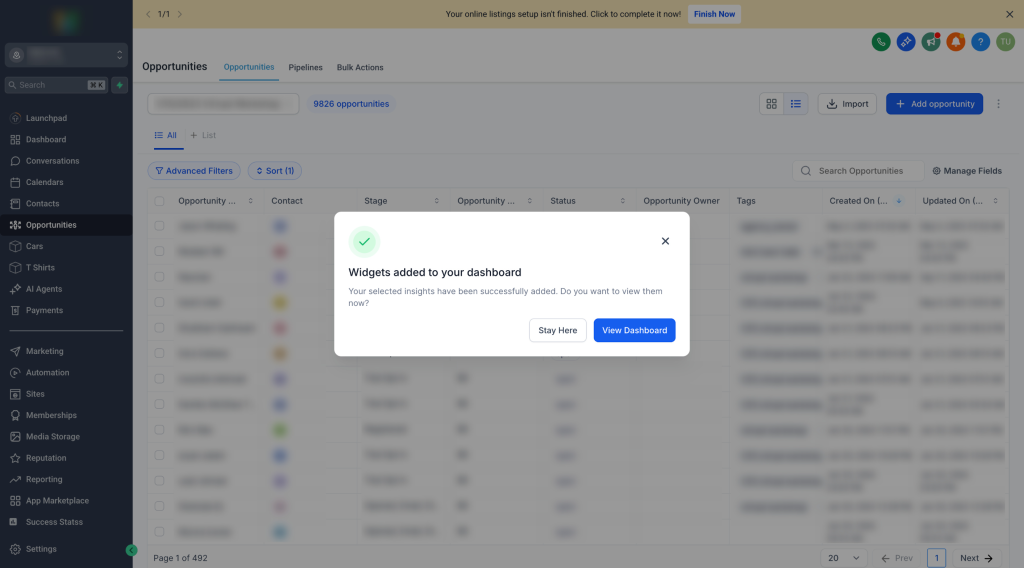 Step 6: You can stay on the same page or go to the dashboard to view insights. #