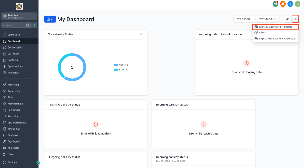 Step 3: Choose “Manage Dashboard Timezone” #